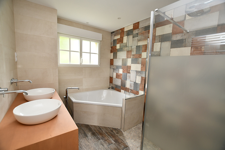 Réorganisation de l’espace. Création d’une pièce supplémentaire. Modernisation de l’ensemble afin de transformer les lieux en un espace relaxant et lumineux..
